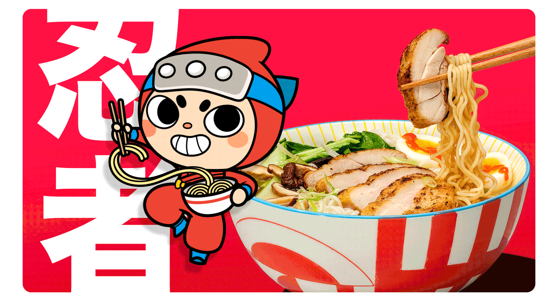 Inspirados en los antiguos shinobi, diseñamos el personaje oficial para el restaurante Ninja Ramen ubicado en Madrid, España.