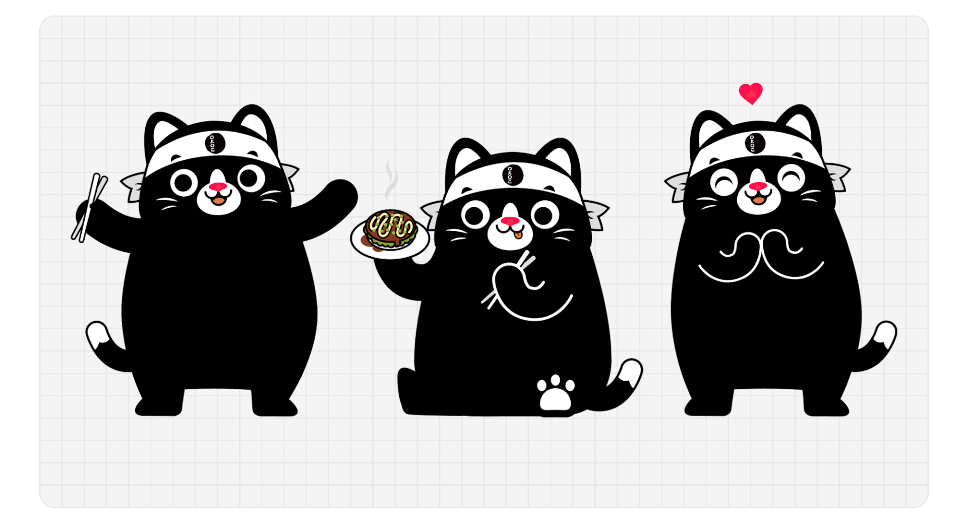 , restaurante de Bélgica. Creamos a Aki, un gatito amigable y amante del okonomiyaki.